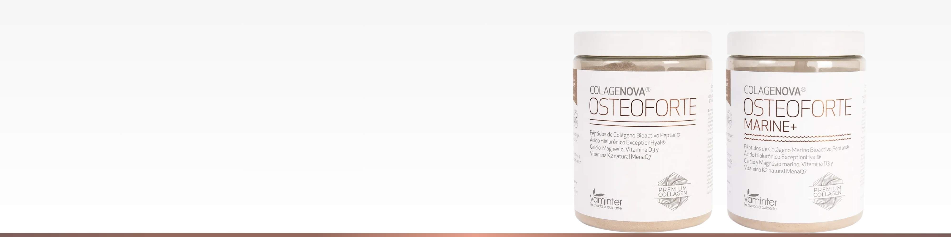 La exclusiva fórmula de Colagenova Osteoforte contiene colágeno hidrolizado marino, calcio, magnesio, vitamina D y vitamina K2, una combinación diseñada para fortalecer los huesos y articulaciones. Estos nutrientes trabajan en sinergia para favorecer la salud ósea, mejorar la densidad mineral, apoyar la regeneración del cartílago y contribuir al bienestar muscular, ayudando a mantener un sistema locomotor fuerte y resistente frente al paso del tiempo.