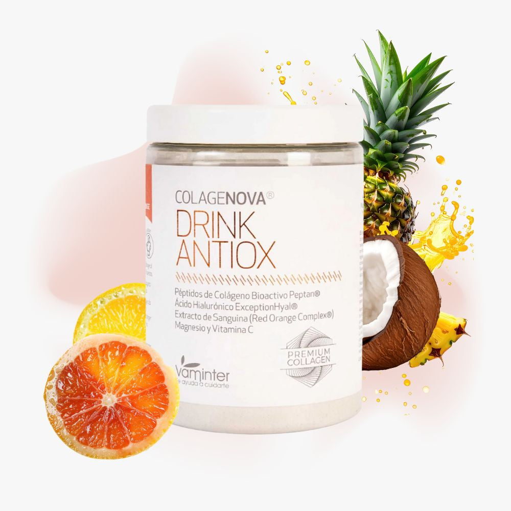 COLAGENOVA® DRiNK ANTIOX es un complemento alimenticio para tomar diariamente diluido en un vaso de agua a base de péptidos de colágeno bioactivos Peptan®, hidrolizado enzimáticamente para una mejor biodisponibilidad, fuente de proteína que contribuye al mantenimiento normal de los huesos.