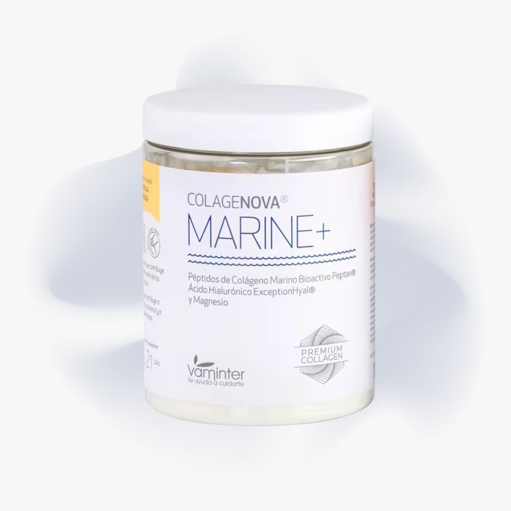 Colagenova Marine es un suplemento de colágeno hidrolizado marino puro, enriquecido con ácido hialurónico, magnesio, vitamina C y silicio. Formulado especialmente para mejorar la salud articular, fortalecer la piel, uñas y cabello, y combatir el envejecimiento celular desde el interior. Su alta biodisponibilidad garantiza una absorción rápida y eficaz, ideal para quienes buscan una piel más firme y articulaciones más flexibles. Un producto estrella en el cuidado antiedad y regenerativo, sin azúcares añadidos ni alérgenos.