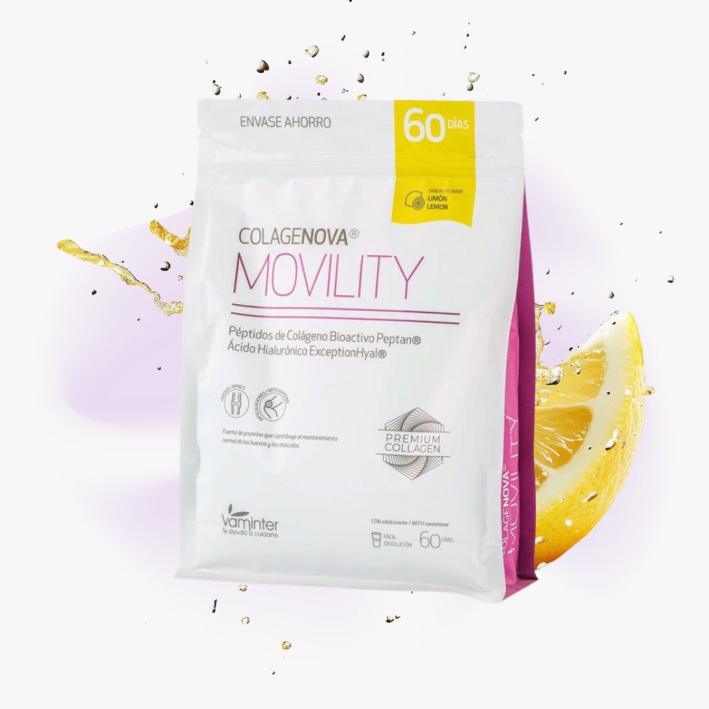 Colagenova Movility combina colágeno bioactivo y ácido hialurónico para ayudar a mantener articulaciones más flexibles, cómodas y preparadas para el movimiento diario.